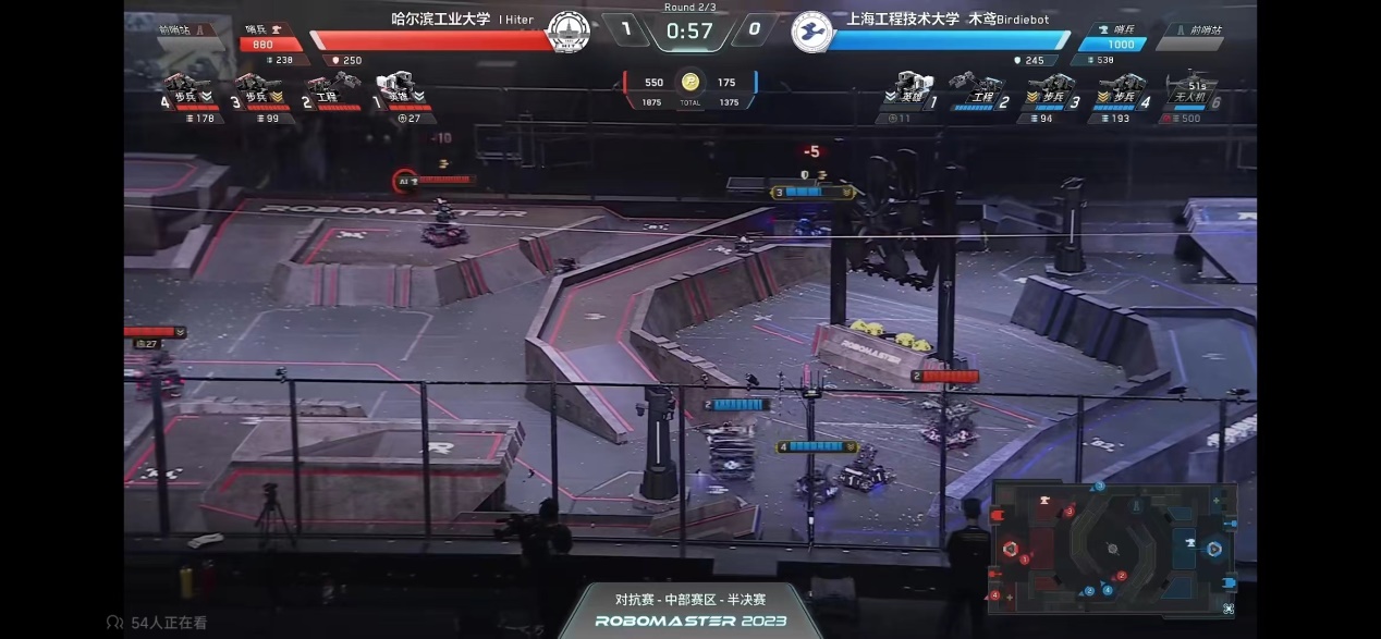 本次超级对抗赛•中部区域赛,开云kaiyun官网学生科创中心机械创新基地联合教务处组织34名学生参赛。赛制采用小组循环赛和淘汰赛方式。木鸢Birdiebot战队在小组赛(BO2)中通过精妙绝伦的机械设计、众志成城的团队配合以及行云流水的操控技术均以2:0的战绩打败桂林信息科技学院GIRT战队、福建师范大学Pikachu战队、西南石油大学铁人战队,以小组赛第一的成绩出线,此番操作可圈可点获得官方专业人员的一致称赞。在16进8淘汰赛(BO3)时,工程操作手任力维同学高烧不退,在团队的鼓励和支持下,他凭借着自身坚强的意志吃着退烧药、贴着退烧贴、身披毛毯带病参赛,不但成功地为团队稳定地输出经济,还作为步兵的研发代表拿到了第三场的MVP,最终以2:0的战绩打败中国矿业大学CUBOT战队。在8进4淘汰赛(BO3)中,战队一鼓作气,再次以2:0的战绩打败西安电子科技大学IRbot战队,勇闯四强。在半决赛(BO3)中交战曾获2022年全国赛一等奖的哈尔滨工业大学IHiter战队,因实力悬殊无奈进入季军争夺战。但在季军争夺战(BO5)中,战队创造了英雄的双对狙场面,这一场不寻常的交战使现场瞬间燃爆,获得了无数观众的欢呼声,最终以3:0的战绩突破自我、首夺季军。