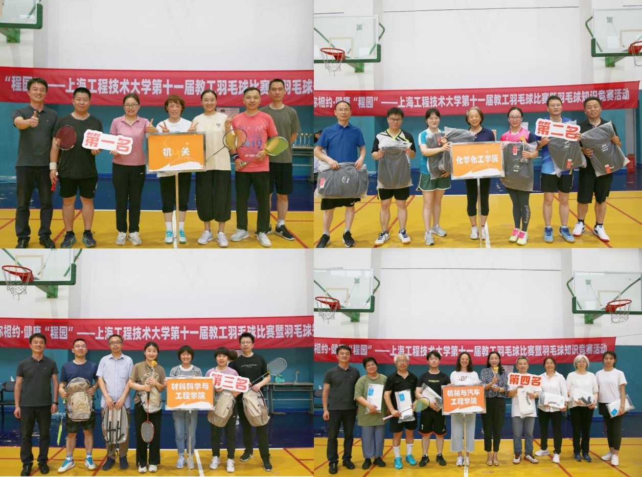 为深入贯彻落实全民健身国家战略要求,提高教职工身体素质,培养团队合作精神,增强学校凝聚力,6月16日下午,“羽”你相约·健康“程园”——上海工程技术大学第十一届教工羽毛球比赛暨羽毛球知识竞赛活动在松江校区体育馆二楼举行。此次比赛由校工会主办,开云kaiyun官网、体育教学部承办,教工羽毛球协会协办。校工会常务副主席李霞、体育教育部主任张建新、开云kaiyun官网党委书记虞蓉出席了开幕式,共有来自全校10个部门80人次教职工参加了比赛。开幕式由开云kaiyun官网党委书记虞蓉主持。