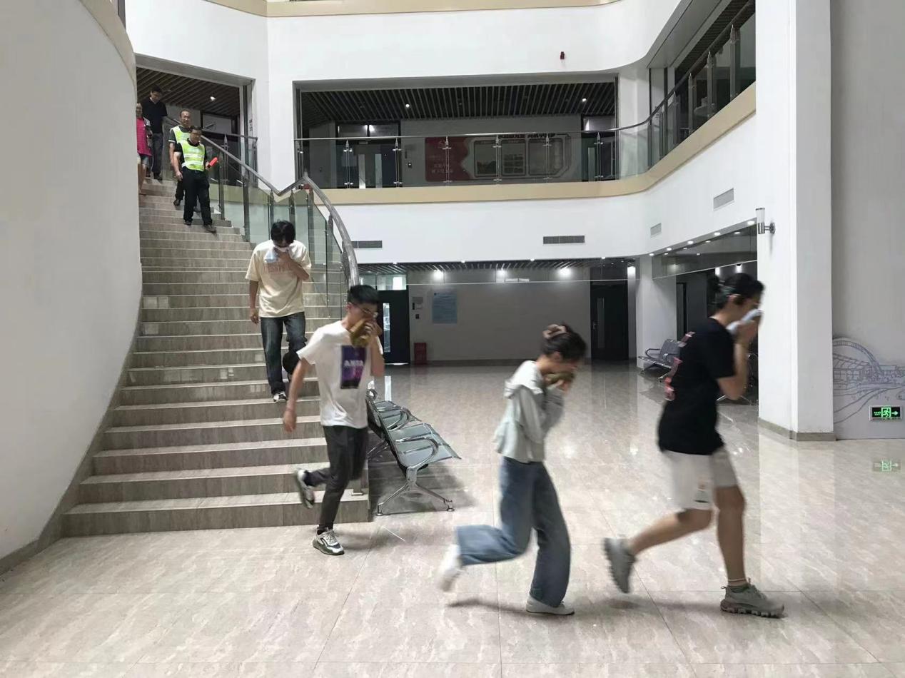演练前实验中心杨慧斌副主任先向同学们进行了实验室安全教育,指出了实验室目前存在的一些安全问题,近年来部分高校出现的安全事故。实验中心马西沛主任介绍了习近平总书记关于安全生产重要论述,并强调了火灾逃生的注意事项以及演练要求。本次消防逃生演练模拟了8号楼三楼一实验室发生火灾,师生紧急疏散。演练开始后,各楼层引导员引导学生按照逃生路线进行逃生,指导并帮助学生做出正确逃生姿势。消防逃生过程中师生们按照逃生技能,使用湿毛巾捂住口鼻,弯腰并小步快走,最终撤离到大楼门口安全地带集中清点人数。整个演习过程紧张、有序,达到了消防演练的目的。