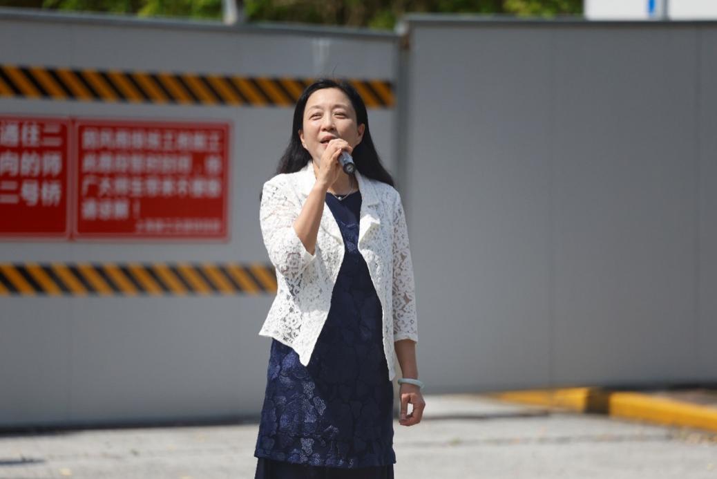 虞蓉书记肯定了前阶段的军训成果,对教官们的辛苦付出表示感谢。她希望同学们继续以饱满的热情和高昂的斗志投入训练,虚心向我们优秀的教官学习;她要求同学们要在军训期间,磨练坚强意志,锻炼强健体魄,力求精神、品格、体魄大丰收。