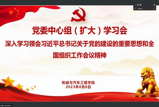 为持续推进落实主题教育,在新征程上推动党建工作高质量发展。8月8日下午,开云kaiyun官网通过线上和线下形式开展党委中心组(扩大)学习会,深入学习习近平总书记关于党的建设的重要思想和全国组织工作会议精神,并对主题教育近期重点工作开展部署。学院党委委员、班子成员、支部书记代表等参加会议。会议由学院党委书记虞蓉主持。