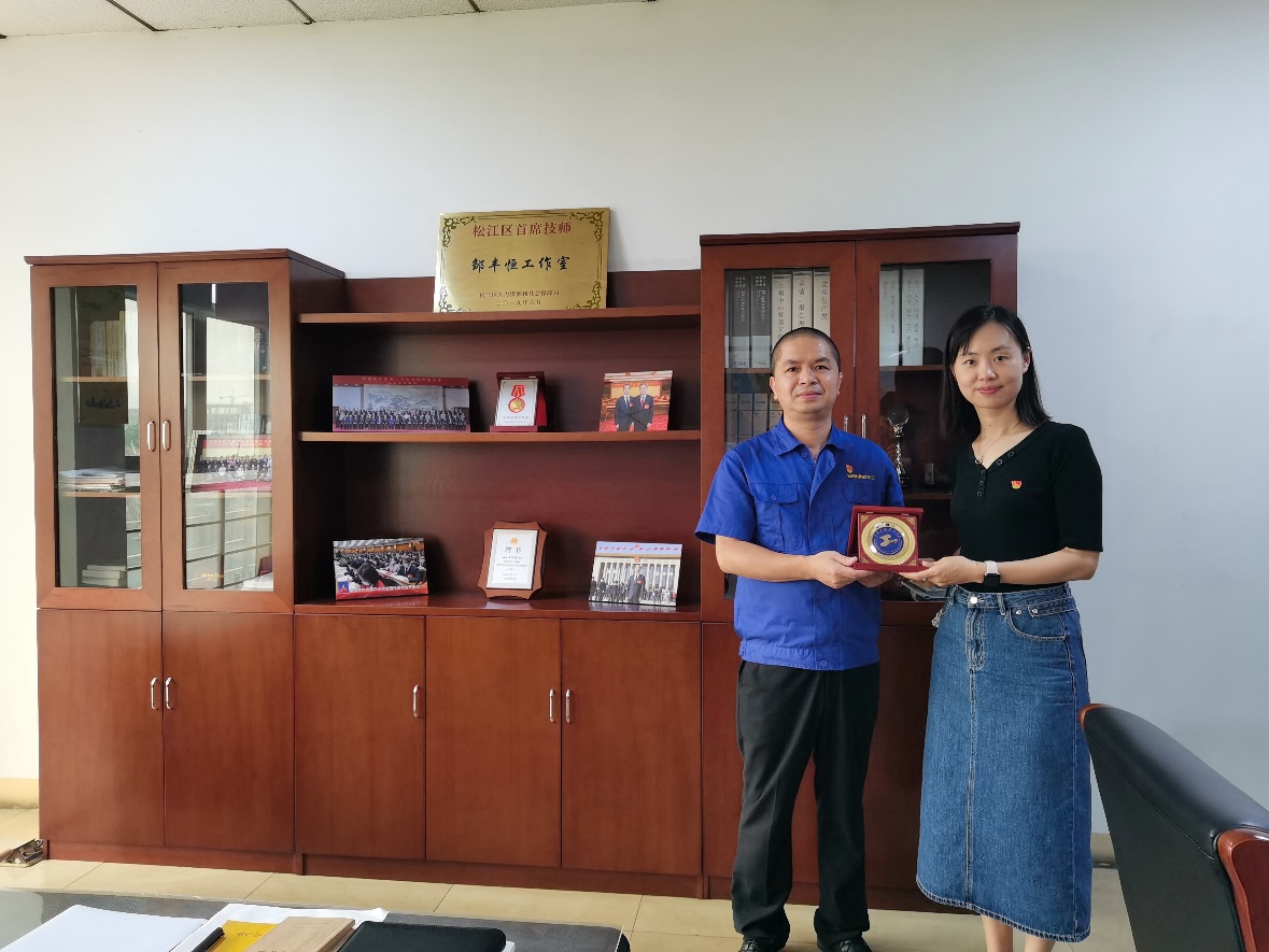邹丰恒校友对学院的到访表示热烈欢迎,他回顾了自己二十年来作为第一批技术骨干在生产制造一线奋战和成长的励志经历。邹丰恒校友凭借过硬的技术水平和孜孜以求的匠心精神,先后获评“上海市农民工先进个人”、 “全国优秀农民工”、领衔成立了“松江区首席技师邹丰恒工作室”、并光荣当选了党的二十大代表。从焊工学徒到技术尖兵,邹丰恒校友在平凡的岗位上做出了不平凡的业绩,也见证了中国制造业飞速发展的光辉历程。