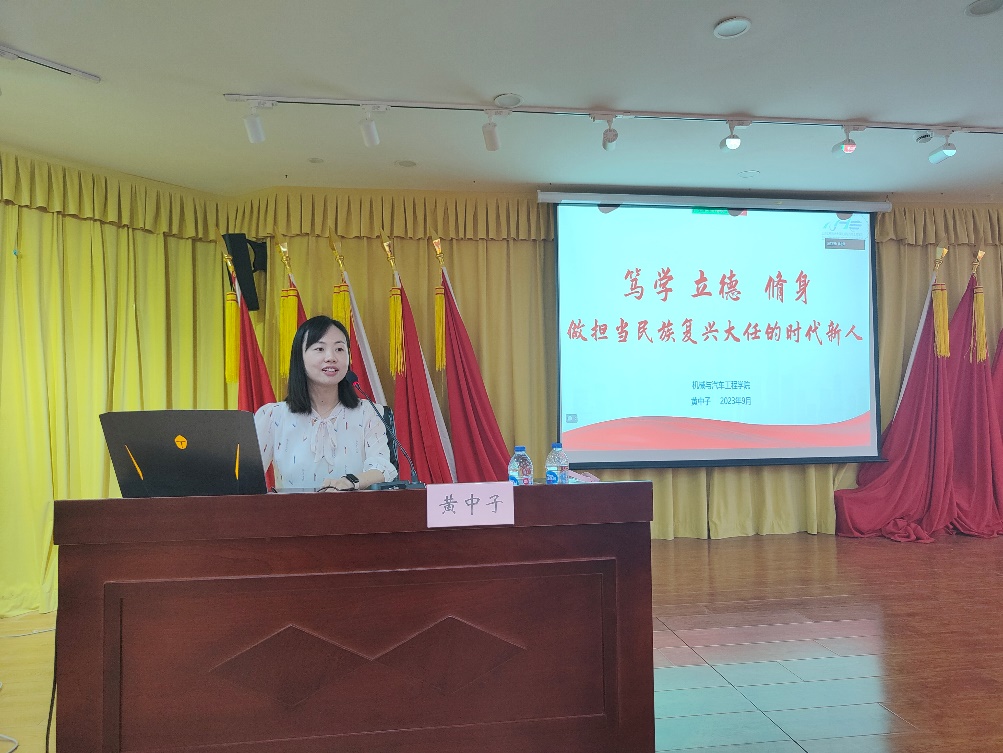 黄中子副书记从“笃学、立德、修身”三个层面讲述了当代大学生如何成为担当民族复兴大任的时代新人。“笃学”是学会如何做学问,成为国家战略发展需要的创新人才,为实现中国式现代化提供人才支撑;“立德”则是坚守理想、坚定信仰,投身国家建设,做德智体美劳全面发展的社会主义建设者和接班人。 “修身”则应树立正确三观,谨言慎行、洁身自爱,丰富课余生活,保持身心健康。