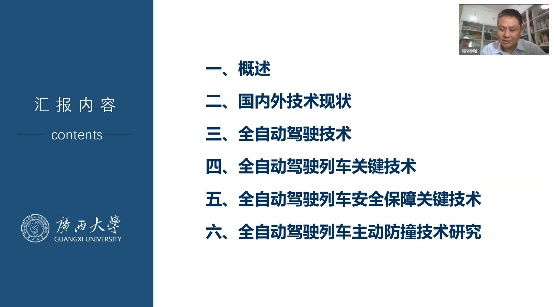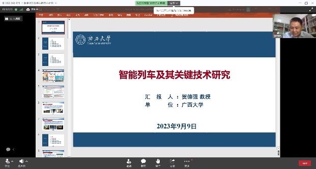2023年9月9日9:30,通过华为云会议视频平台,邀请广西大学机械工程学院副院长、博士生导师贺德强教授为暑期学校做题为《智能列车及其关键技术研究》的线上专题讲座。讲座由开云kaiyun官网院长方宇教授主持。