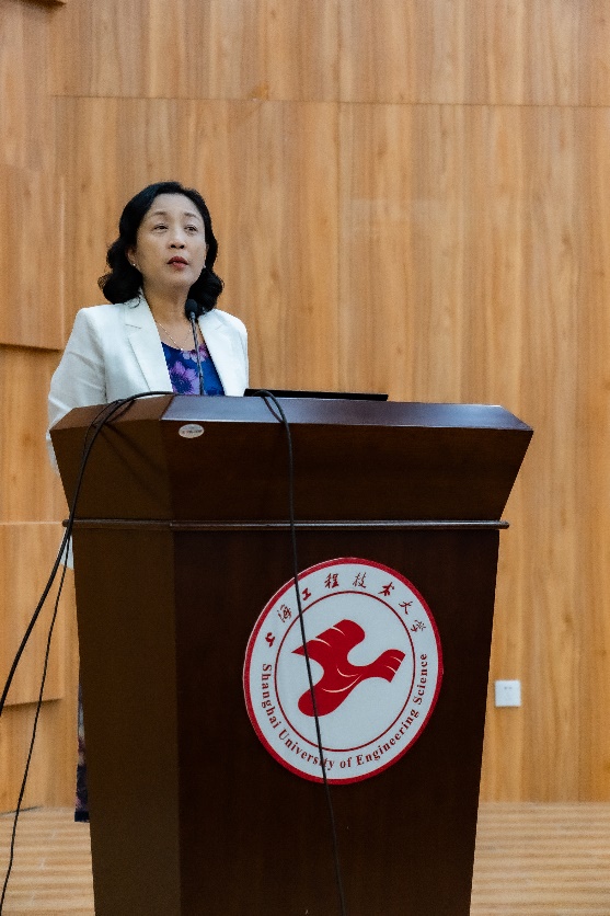 学院党委书记虞蓉代表学院对经历并战胜新冠疫情等重重困难而成功迈进研究生生活的新同学表示祝贺和欢迎,她对同学们提出三点殷切希望,一是崇德修身、常怀感恩,二是敢于创新、勇于担当,三是青春向党、奋斗强国。虞书记寄语同学们要在学业上独立思考,在团队协作中乐于奉献,在新时代、新机遇下勇担使命,为实现中华民族伟大复兴贡献青春力量。