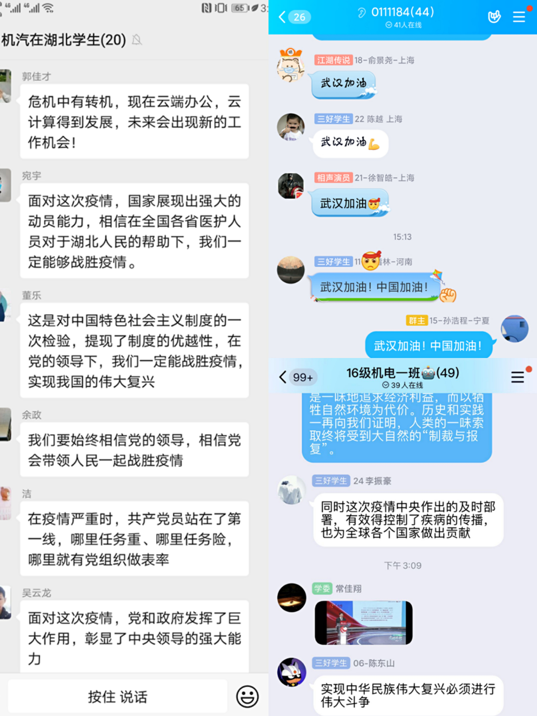 相信在此次思政大课的号召下,同学们必将树立信心、坚定信仰,以疫为鉴、励志勤学,以高度的责任心和强烈的使命感,与祖国同命运,与人民共患难!
