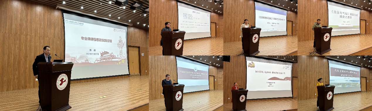会上,邓胜祥、刘飞、范志毅、黄双、马芳、王兆强六位老师分别从引导学生坚定理想信念、厚植爱国主义情怀、加强品德修养、增长知识见识、培养奋斗精神、增强综合素质等方面,作《产教融合视角下的生产实习课程思政实践》、《汽车工程系课程思政建设情况汇报》、《材料力学》等课程思政理论、案例的分享、交流。