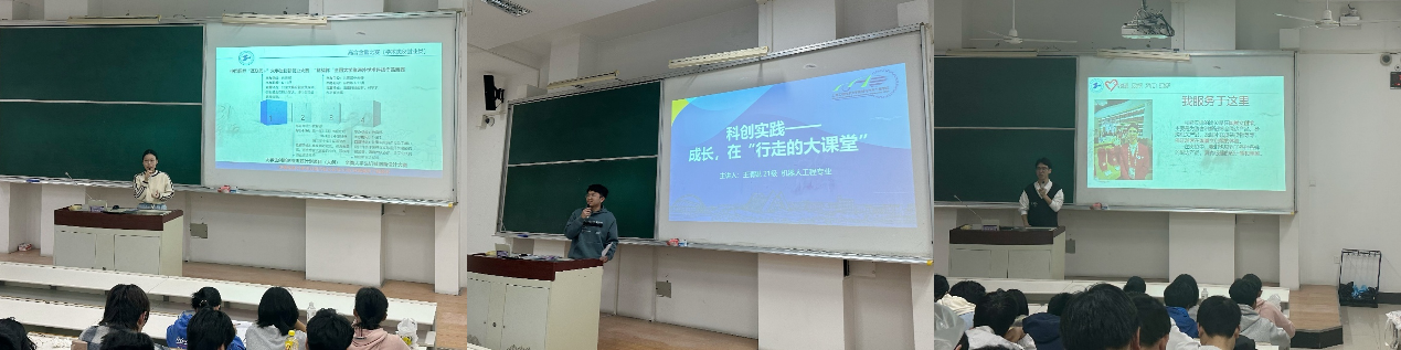 At the meeting, three national scholarship and Shanghai scholarship recipients from Automotive Service Engineering, Robotics Engineering and Intelligent Manufacturing majors, Ms. Zhu Bingjing, Mr. Tao Yafei and Mr. Wang Qingrui, shared their own learning experience, science and innovation experience and volunteer service, and introduced the platform of college students' innovation labs as well as the channels for applying for various kinds of innovation and practice activities. They provided a comprehensive study guide for the younger students.