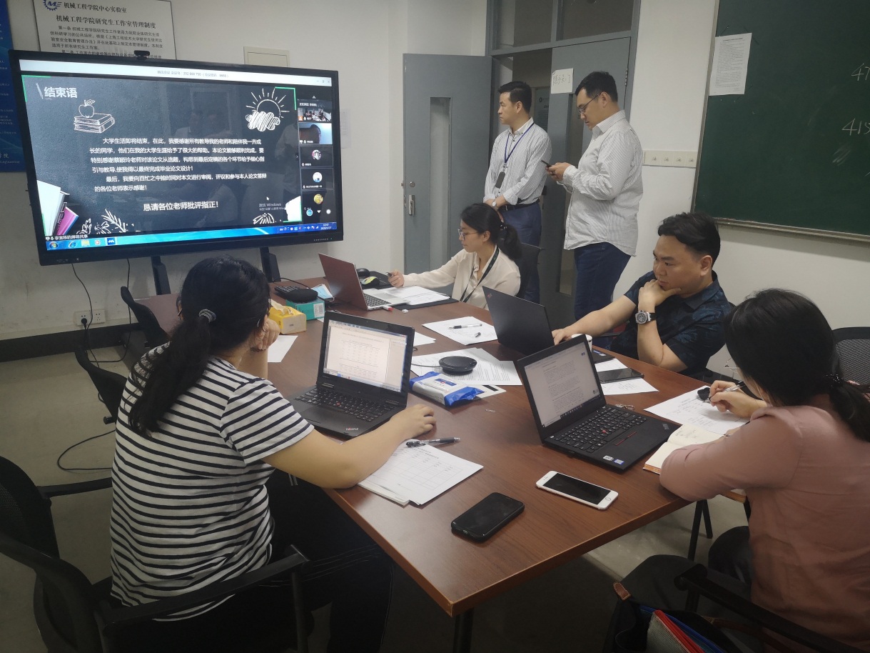 为确保毕业设计(论文)线上答辩顺利进行,学院答辩委员会及各答辩小组多次召开了专题会议,研究制定了线上答辩的实施方案和工作指南。充分利用网络平台,反复测试预演,确保答辩方案能够顺利实施。