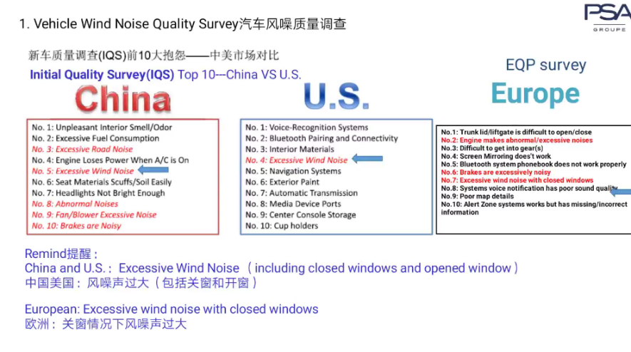 吴博士以全球汽车风噪质量调查报告为切入点,阐述了关于汽车风噪的概况与细节,分析了目前国内外汽车风噪声对汽车声品质的影响。随即讲解了现有实际中,新型车型如新能源电动汽车等在研发与试运行过程中遇到的各种类型的风噪声(形状噪声、泄漏噪声、空腔噪声、口哨声、风振声等)。在整个报告过程中,吴博士将理论知识与实际工程问题相结合,详细介绍了整车风噪开发的过程及重难点。其中详细讲解了(1)风噪测试的方法,包括基于实验室的风洞测试、以及道路运行测试等;(2)结合实例阐述整车风噪开发的优先级和注意事项;(3)在整车风噪开发过程中,从投入到完成整个流水线思路。