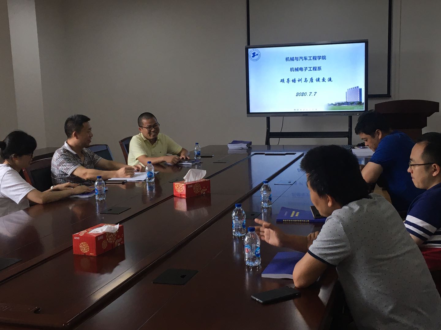 为加强硕导队伍建设,提升研究生培养能力与水平,机械电子工程系于202077日下午1点半在交通楼8B604召开了“机械电子工程系硕导培训及座谈交流会”,针对最新的研究生教育管理制度进行学习培训,并交流分享了研究生培养过程中遇到的困难以及成功的经验。