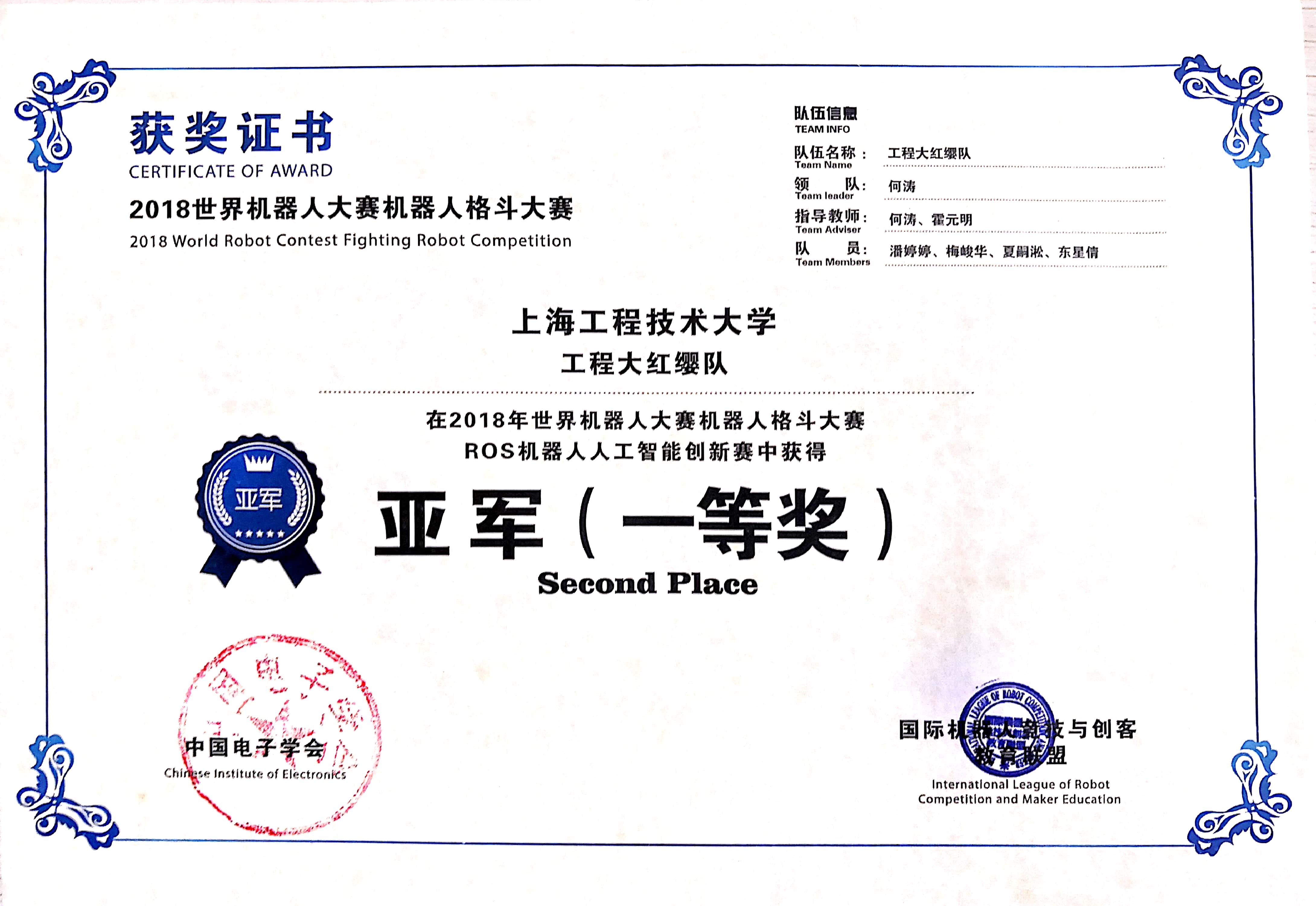 2017.08 | 中国电子学会 | 世界机器人大赛格斗机器人大赛 | 大学组冠亚军 |