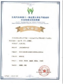 22 | 第十届全国大学生节能减排社会实践与科技竞赛 | 国家级三等奖 | 2017 | 教育部高等教育司 |
