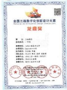 9 | 全国三维数字化创新设计大赛 | 国家级一等奖 | 2018 | 国家制造业信息化培训中心、全国三维数字化创新大赛组委会、中图学学会 |