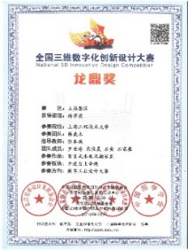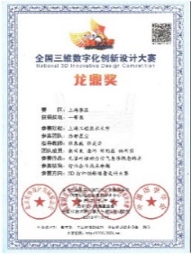 8 | 全国三维数字化创新设计大赛 | 国家级一等奖 | 2018 | 国家制造业信息化培训中心、全国三维数字化创新大赛组委会、中图学学会 |